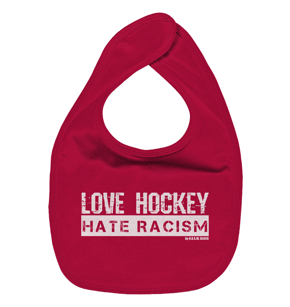 N.O.S.W. BLOCK Lätzchen "LOVE HOCKEY HATE RACISM" Organic Baby-Lätzchen (100% Bio-Baumwolle)