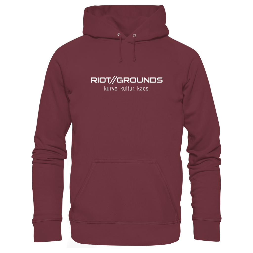 Fanblock Hoodie "RIOT//GROUNDS kurve. kulture. kaos." Organic Kapuzenpullover (100% Bio-Baumwolle)