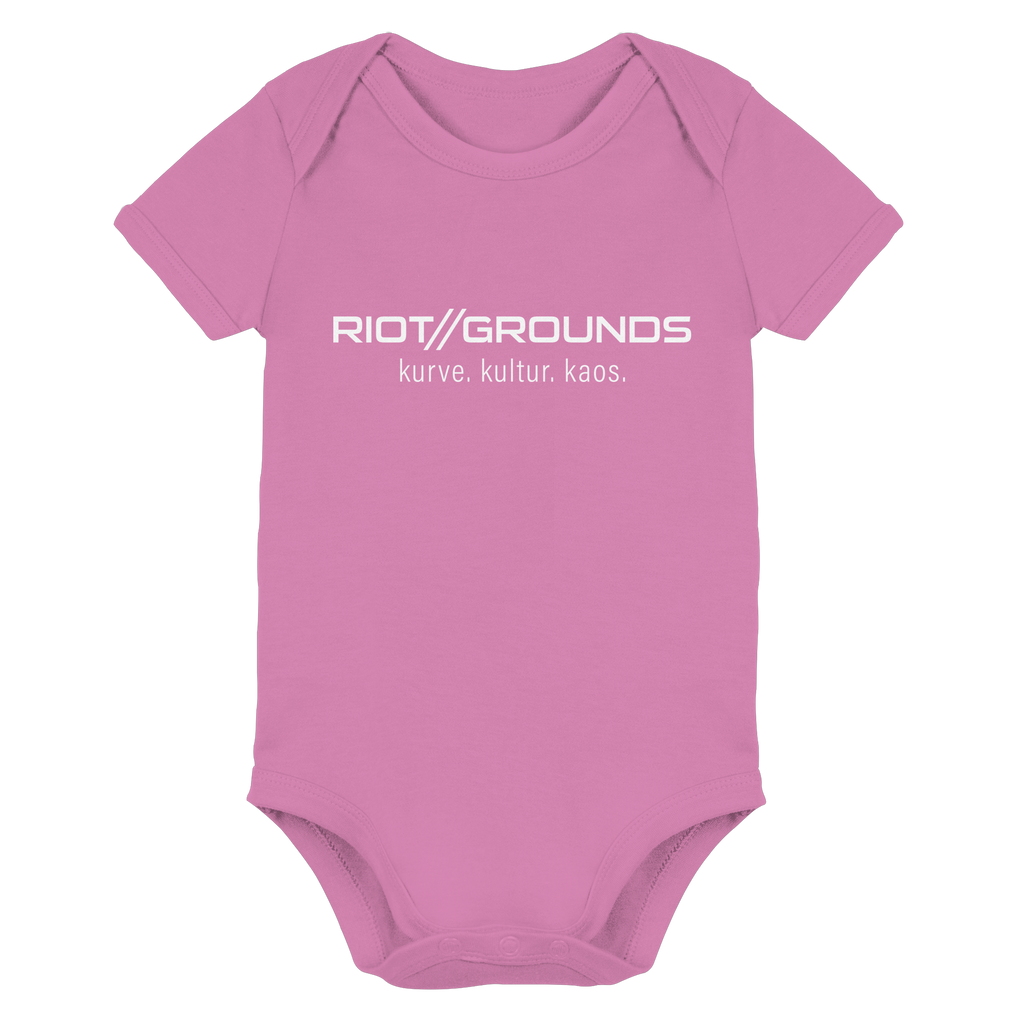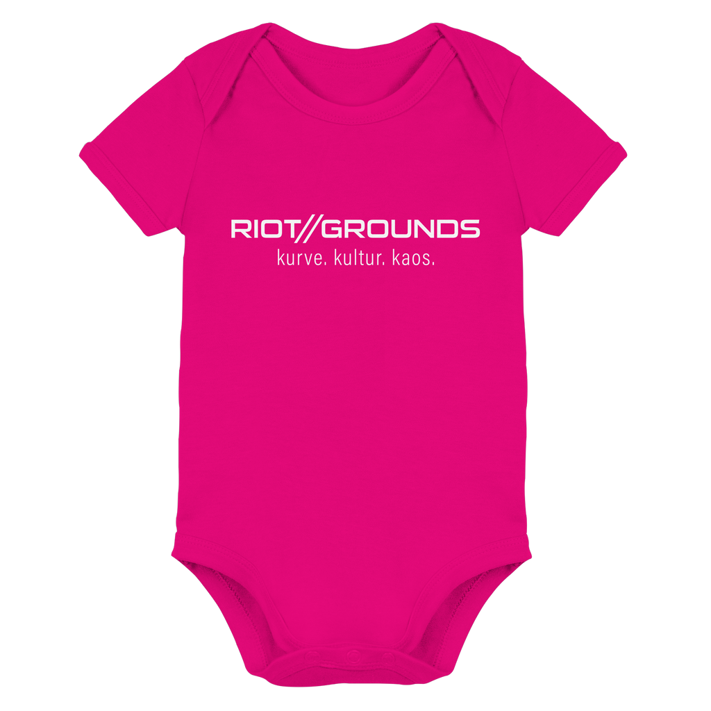 RIOT//GROUNDS Fanblock Body "RIOT//GROUNDS kurve. kulture. kaos." Organic Baby Bodysuite fuchsia organic