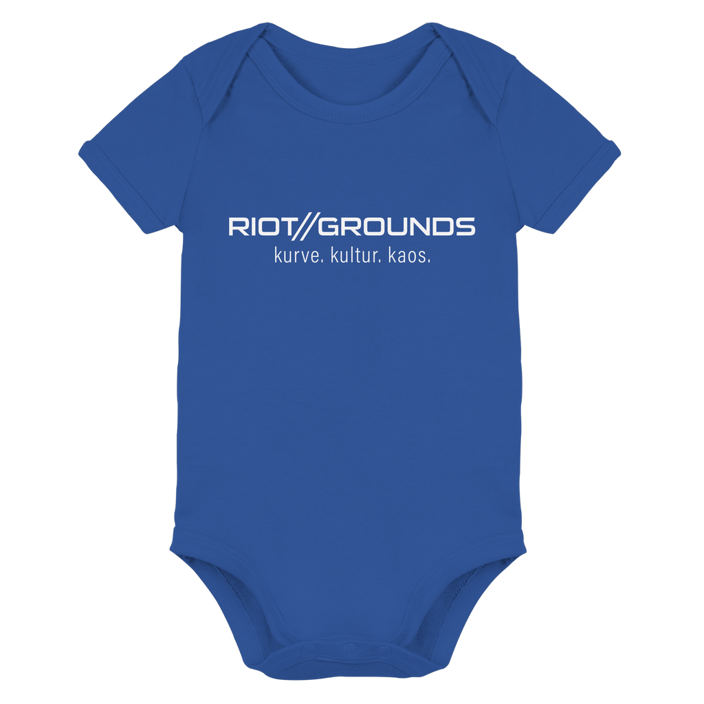 RIOT//GROUNDS Fanblock Body "RIOT//GROUNDS kurve. kulture. kaos." Organic Baby Bodysuite cobalt blue organic