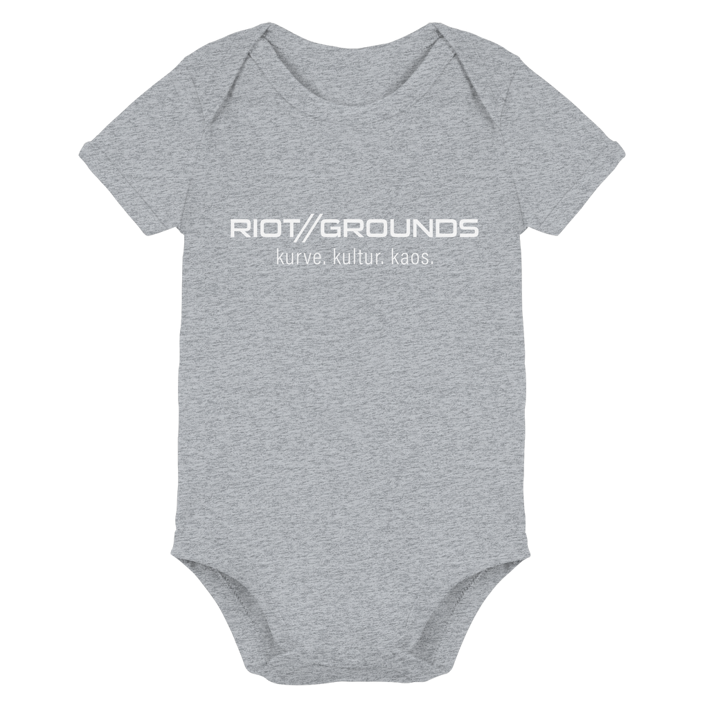 RIOT//GROUNDS Fanblock Body "RIOT//GROUNDS kurve. kulture. kaos." Organic Baby Bodysuite heather gre